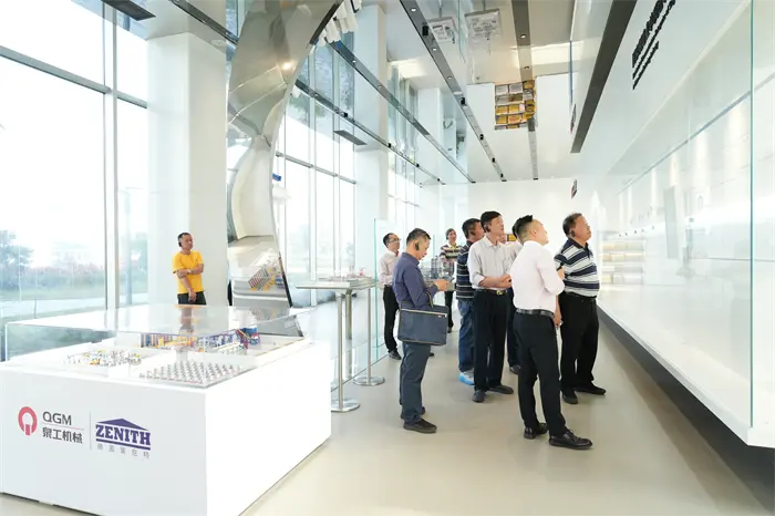 O presidente Lin Boqian e sua delegação visitaram pela primeira vez o salão de exposições da história de desenvolvimento da Quangong Co., Ltd. e, por meio de painéis gráficos, materiais de vídeo e exposições físicas, compreenderam plenamente a luta da empresa desde o seu início até se tornar uma líder do setor. O responsável pela Quangong apresentou em detalhes os avanços inovadores que a Quangong Co., Ltd. fez na área de equipamentos para máquinas de tijolos por mais de 40 anos, bem como a filosofia corporativa de "o artesanato cria qualidade e a tecnologia lidera o futuro". O presidente Lin Boqian apreciou muito as conquistas da Quangong Co., Ltd. ao insistir na pesquisa e desenvolvimento tecnológico e na promoção de atualizações da indústria.