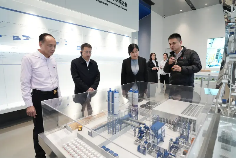 A delegação visitou primeiro o Salão de Exposições de História da empresa. Guiados pelos executivos da empresa, eles obtiveram uma visão abrangente da jornada de desenvolvimento da Quangong Machinery Co., Ltd., abrangendo mais de quarenta anos, examinando as diversas honrarias, certificações e conquistas tecnológicas da empresa. A delegação elogiou a empresa pelo seu compromisso inabalável com a produção como uma indústria central e pela sua filosofia de inovação contínua, reconhecendo-a como um microcosmo vívido do desenvolvimento mais amplo da economia privada.