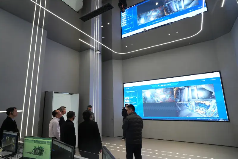 Posteriormente, a equipe de inspeção visitou o centro de controle da "Plataforma de Serviços em Nuvem de Equipamentos Inteligentes de Quangong" para obter uma compreensão detalhada das funcionalidades e eficácia operacional da plataforma. Aproveitando tecnologias de ponta, esta plataforma fornece serviços completos – incluindo monitoramento on-line de equipamentos e operação e manutenção remotas – para clientes em todo o mundo, melhorando significativamente a eficiência do serviço pós-venda. A plataforma foi reconhecida como um Projeto de Demonstração de Nível Nacional para Fabricação Orientada a Serviços. O Sr. Liu Min expressou sua aprovação às iniciativas de transformação digital da empresa e incentivou a empresa a aumentar ainda mais seu investimento em inovação tecnológica.