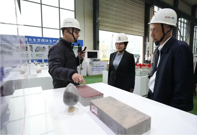 Na área de exibição de amostras de tijolos, o Sr. Liu Min e sua delegação examinaram uma variedade de amostras de tijolos práticas e ecológicas enquanto ouviam apresentações sobre processos de fabricação de produtos e cenários de aplicação. Eles elogiaram a Quangong Machinery Co., Ltd. por seu compromisso com o desenvolvimento verde e suas iniciativas para promover a utilização eficiente de recursos de resíduos sólidos, incentivando a empresa a desenvolver ainda mais produtos que se alinhem com as políticas governamentais e as demandas do mercado.