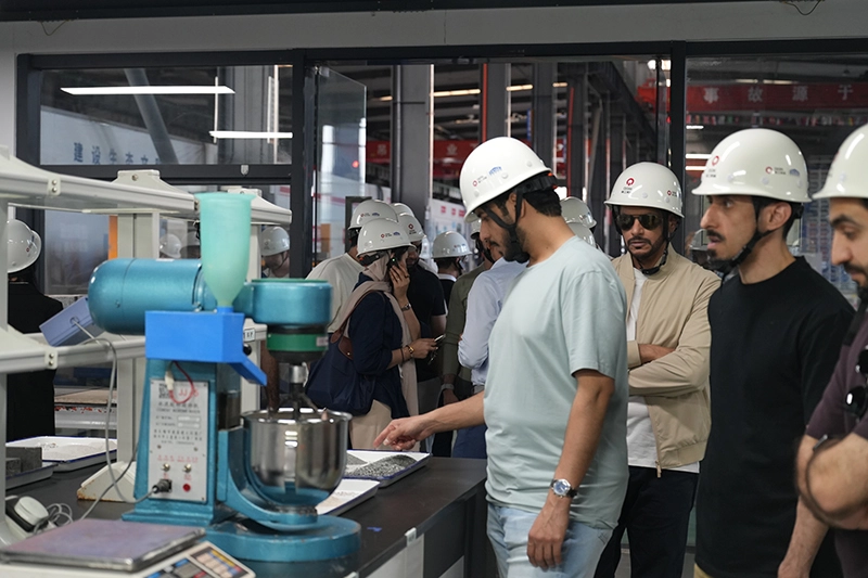 No laboratório de fabricação de tijolos, a delegação testemunhou as capacidades de P&D “sob medida” da Quanzhou Machinery. Como base de pesquisa e desenvolvimento estabelecida em conjunto com universidades como a Universidade de Fuzhou e a Universidade de Engenharia Civil e Arquitetura de Pequim, está equipada com equipamentos avançados de teste de materiais e desenvolvimento de fórmulas, capazes de fornecer soluções personalizadas de fabricação de tijolos com base nas características das matérias-primas, condições climáticas e requisitos do projeto da região do cliente.