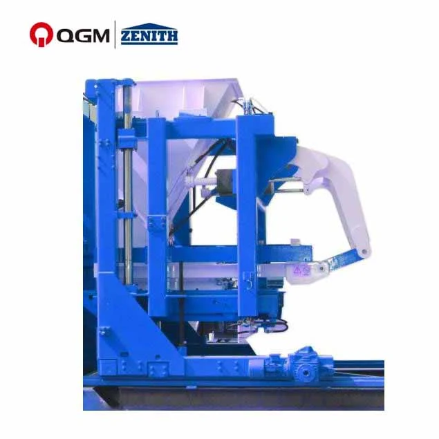 A máquina automática para fazer blocos de cimento tem o padrão europeu, pois foi projetada pela Alemanha Zenith, que é o fabricante com mais de 60 anos de experiência em máquinas para fazer blocos. Para reduzir o custo, a QGM iniciou sua produção em massa na China. ZN1500C tem as vantagens de design de alta tecnologia, maior capacidade, melhor qualidade e desempenho de custo. Tamanho do palete: 1.400 × 1.100/1.200 mm. Diferentes blocos podem ser produzidos alterando apenas o molde.